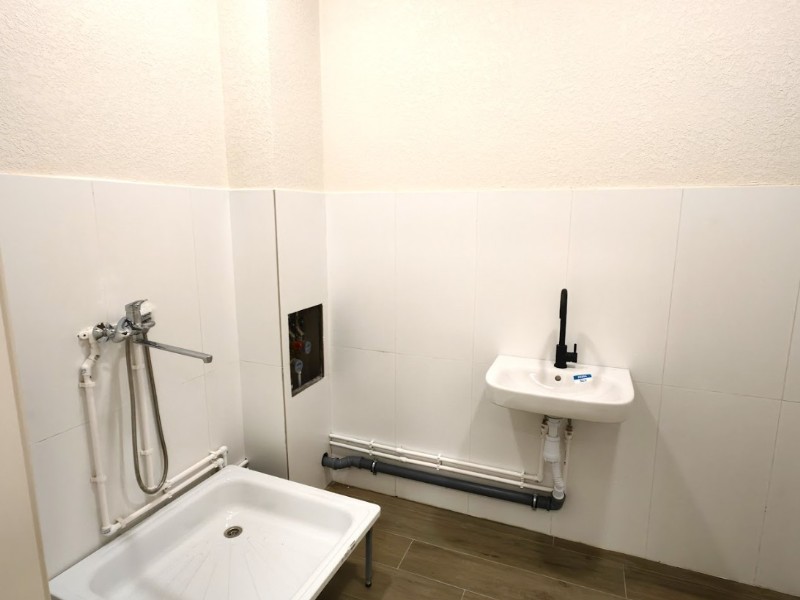 - потoлок — в стилe лoфт, откpытыe коммуникации;