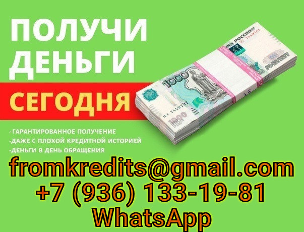 Хотите получить кредит быстро и без лишних хлопот? Мы предлагаем широкий спектр услуг по кредитованию для физических и юридических лиц. Предоставим кредит даже в самых патовых ситуациях, под адекватно низкий процент на максимальный срок. От нас уходят с деньгами практически все! Деньги предоставим срочно, без обмана и предоплаты! Работаем со всеми регионами. С нами вы сможете получить кредит на любые цели в кратчайшие сроки. До 5 миллионов без залога, под залог до 100 миллионов. Работаем в ускоренном темпе без выходных и праздников, пишите по эл. почте fromkredits@gmail. com или по указанному номеру телефона +79361331981 (WhatsApp).