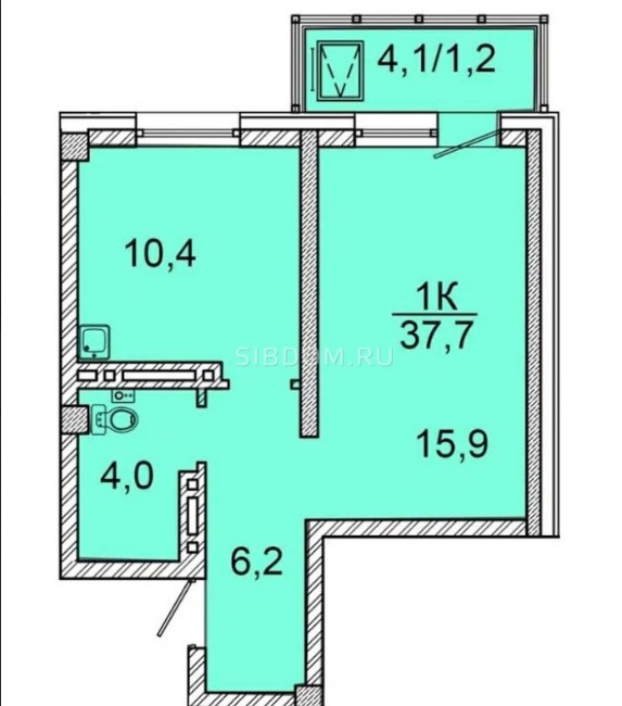 Площадь — 37,3 м²