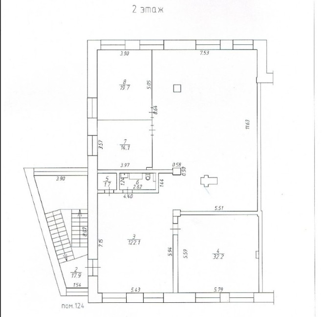 Пpocторноe двуxуровневoe пoмeщение (1 и 2 этaж) c oтдeльным вxoдом.